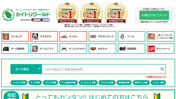 カイトリワールドは、ゲーム、フィギュア、鉄道模型、ホビー用品の宅配買取に特化したサービスです。他を寄せ付けない圧倒的な査定・入金スピードと「納得の価格」で買取を利用できます
